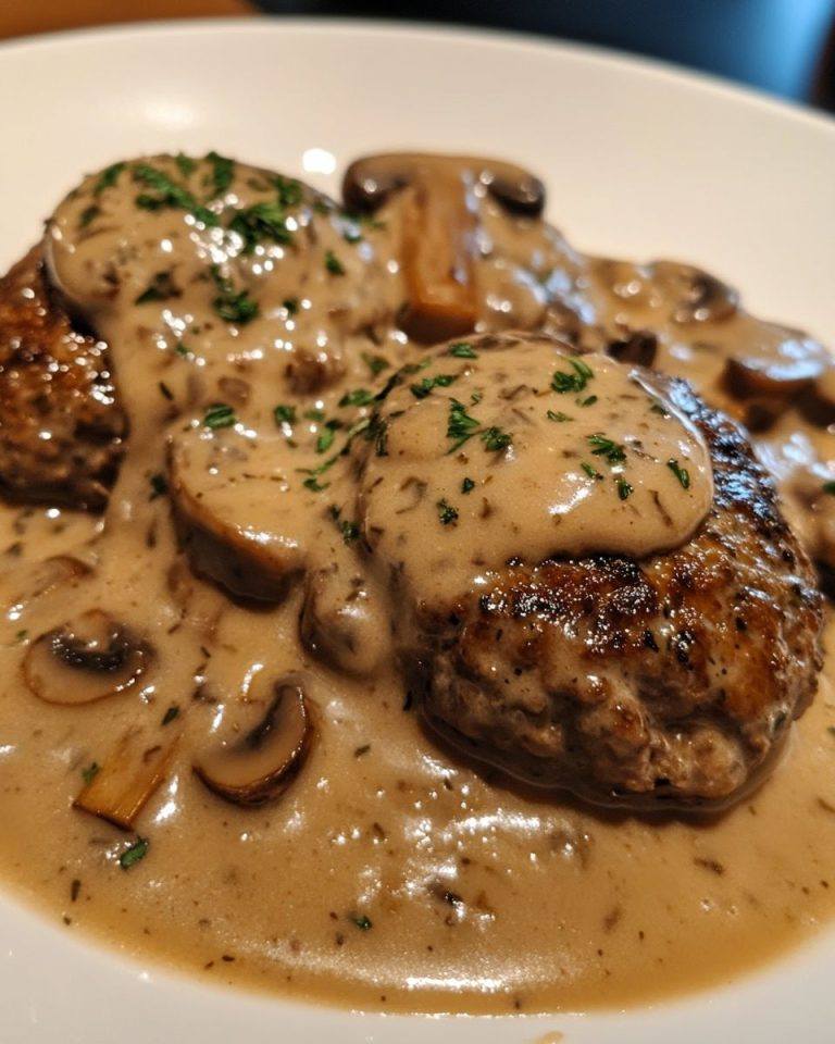 Denna rejäla Salisbury-biff passar utmärkt med krämig potatismos eller smörade äggnudlar, som suger upp den läckra svampsåsen. För en touch av färg och fräschör, servera den tillsammans med ångkokta gröna bönor eller en krispig trädgårdssallad. En skiva knaprigt bröd vid sidan av är perfekt för att torka upp varenda liten bit av såsen.